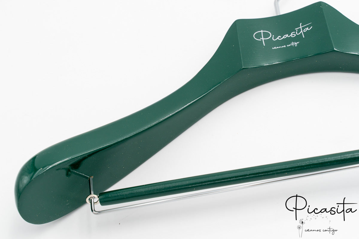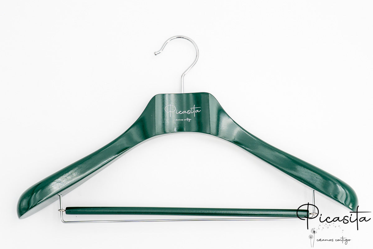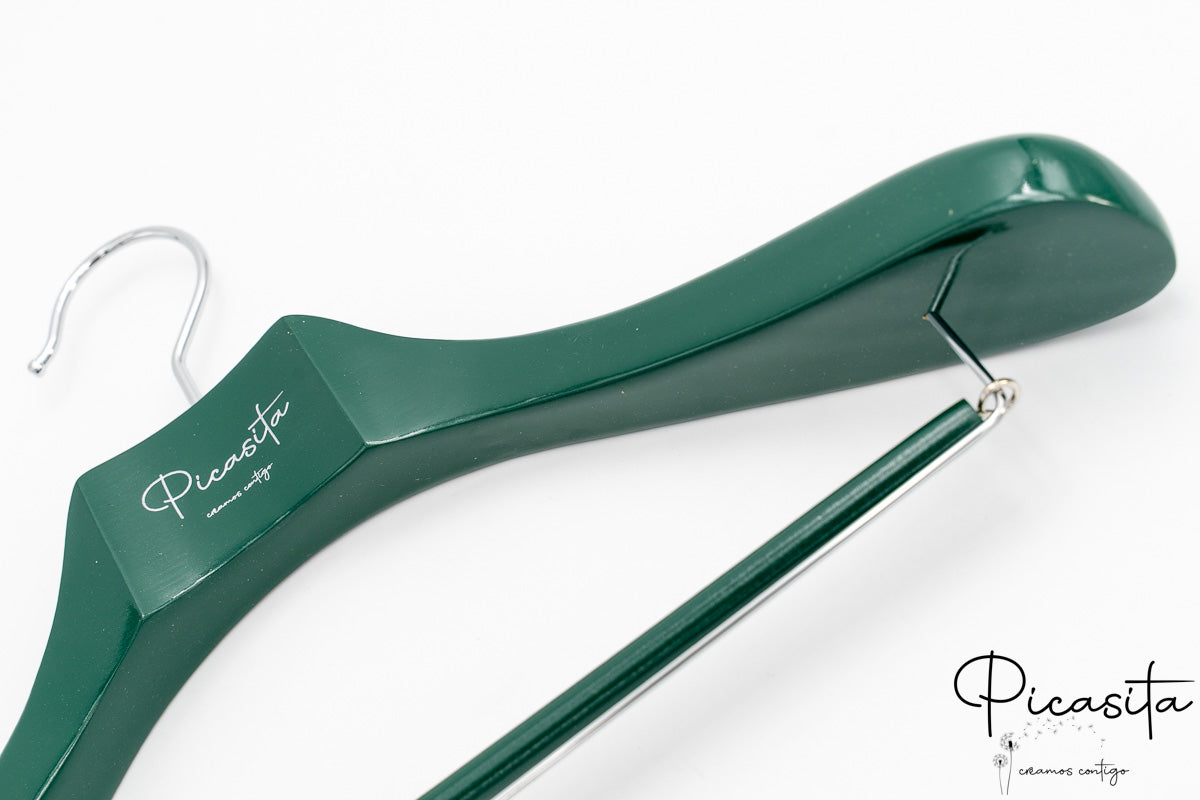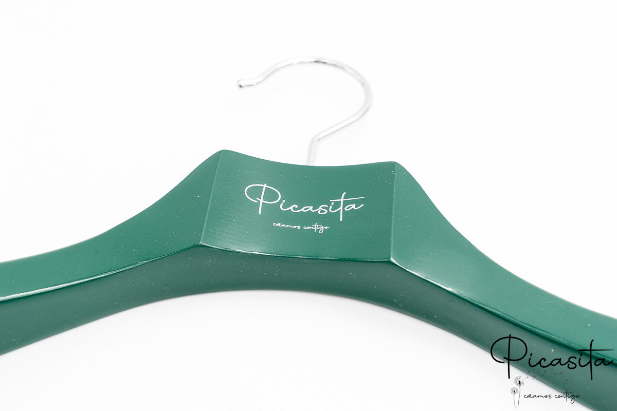 Was unsere personalisierte farbige Bügel wirklich auszeichnet, ist die Möglichkeit, sie vollständig an Ihr Markenbild anzupassen. Wir können Ihr Logo, Ihren Firmennamen, Sprüche oder Daten durch eine präzise Gravur integrieren, die im natürlichen Holzton, in Silber oder einer anderen Kontrastfarbe dargestellt werden kann. Es ist die ideale Lösung, um Ihr Firmenbild in jedem Winkel des Ladens zu stärken.