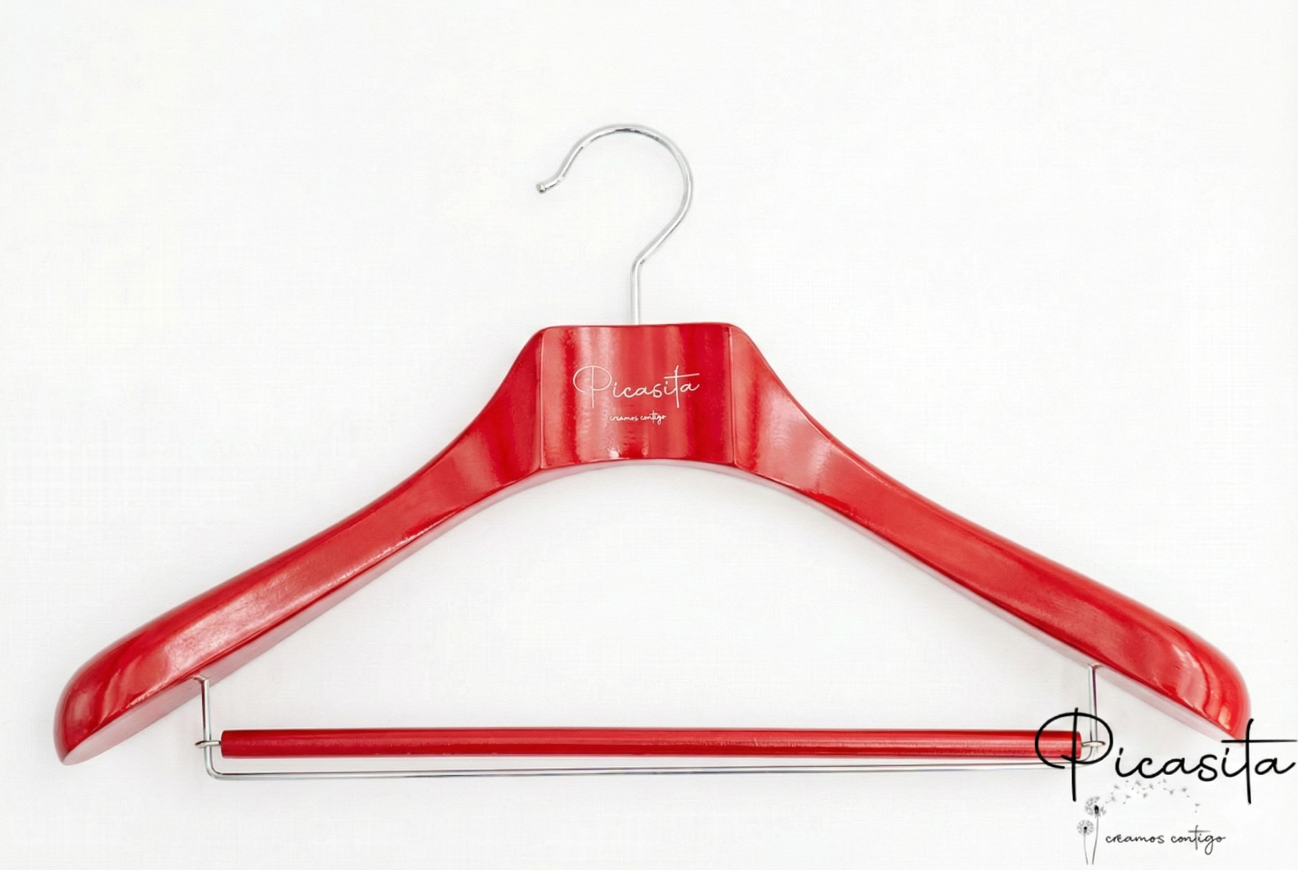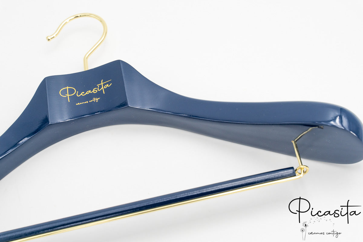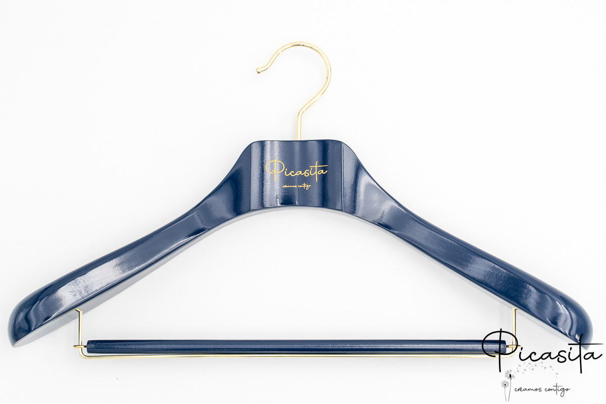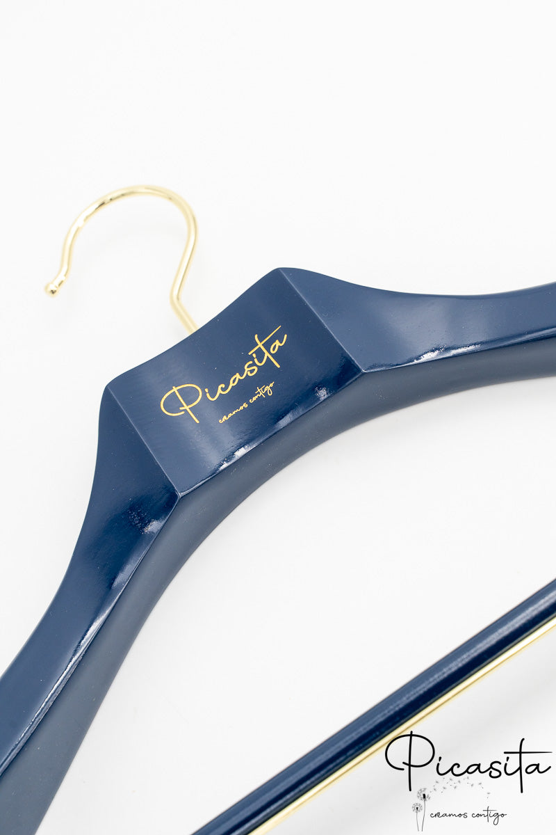 Was unsere personalisierte farbige Bügel wirklich auszeichnet, ist die Möglichkeit, sie vollständig an Ihr Markenbild anzupassen. Wir können Ihr Logo, Ihren Firmennamen, Sprüche oder Daten durch eine präzise Gravur integrieren, die im natürlichen Holzton, in Silber oder einer anderen Kontrastfarbe dargestellt werden kann. Es ist die ideale Lösung, um Ihr Firmenbild in jedem Winkel des Ladens zu stärken.