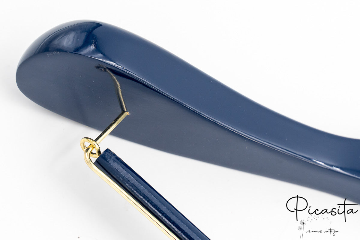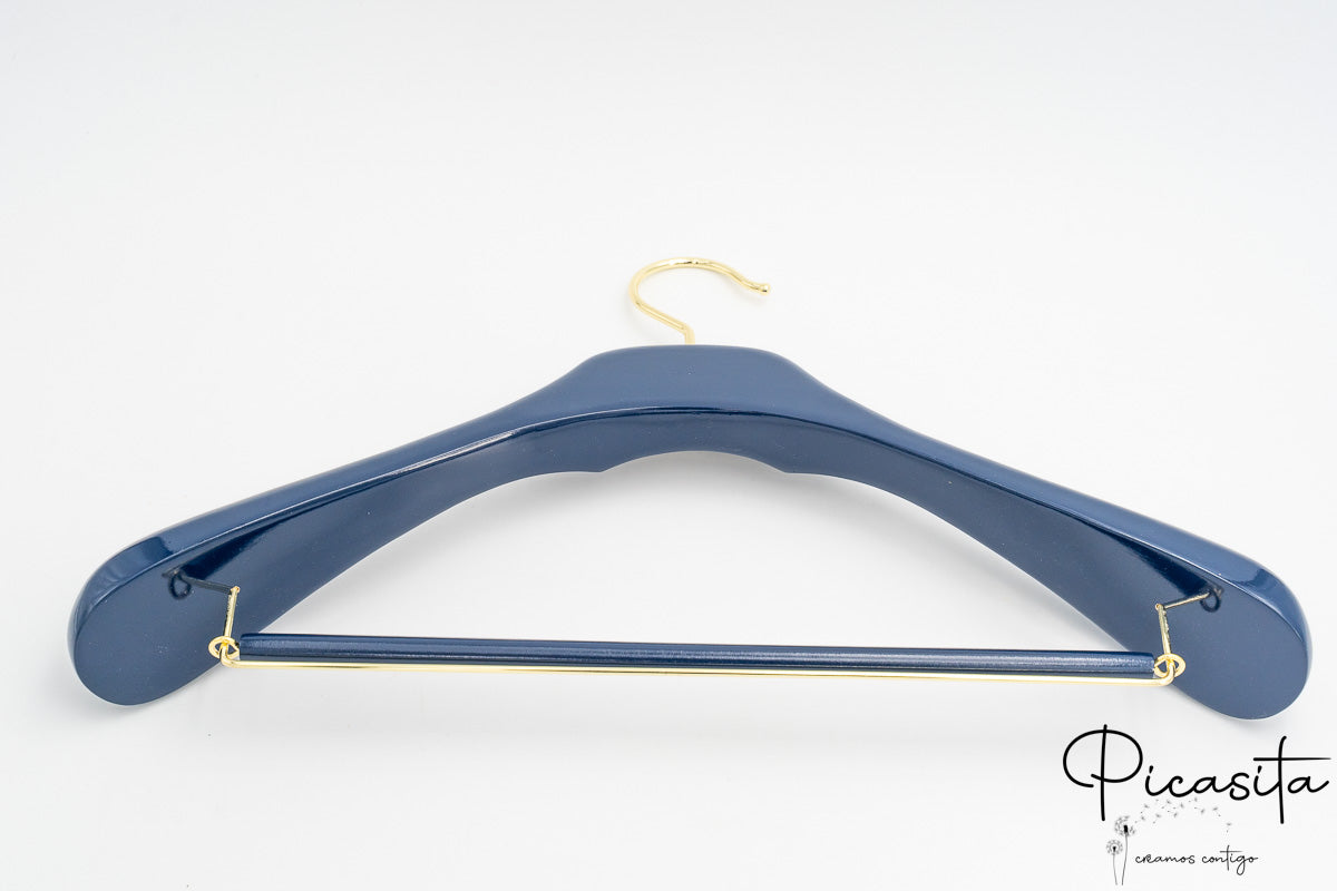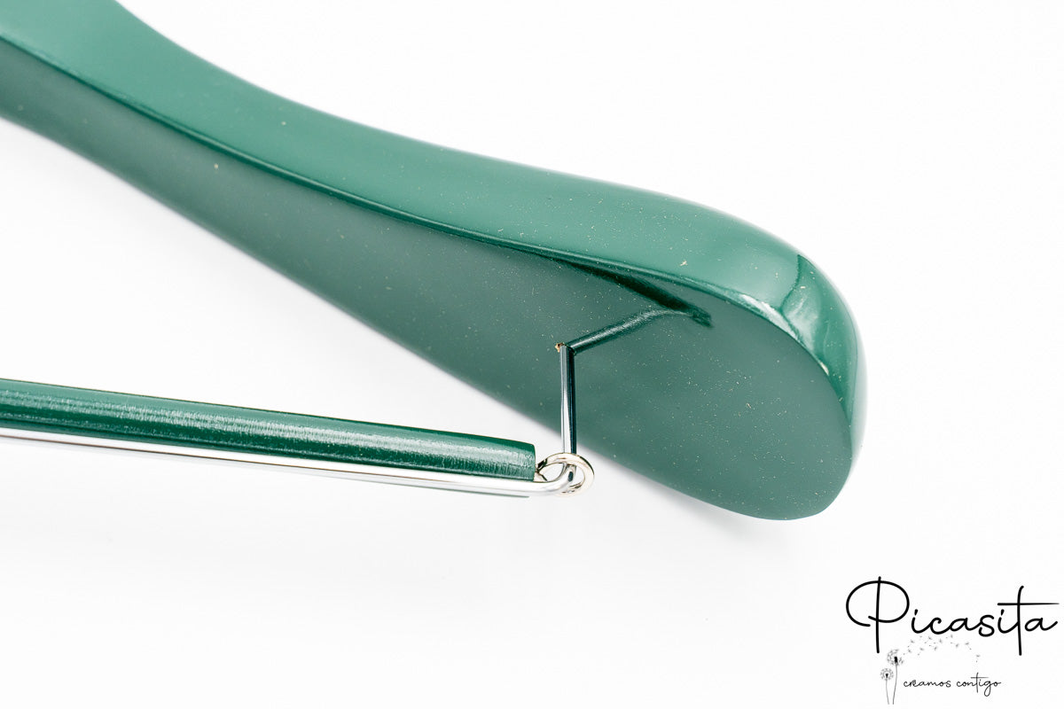 Mit einer Schulterbreite zwischen 40 und 44,5 cm bieten diese Bügel die notwendige strukturelle Unterstützung für alle Arten von Kleidungsstücken, von schweren Mänteln bis zu zarten Kleidern. Die glänzende Oberfläche in lebendigen Tönen wie Blau, Grün, Gold oder Schwarz, kombiniert mit der Möglichkeit, den Haken in Silber, Gold oder Rosé zu wählen, sorgt dafür, dass jeder farbige Bügel für Boutiquen sofort das Licht und die Aufmerksamkeit Ihrer Kunden einfängt.