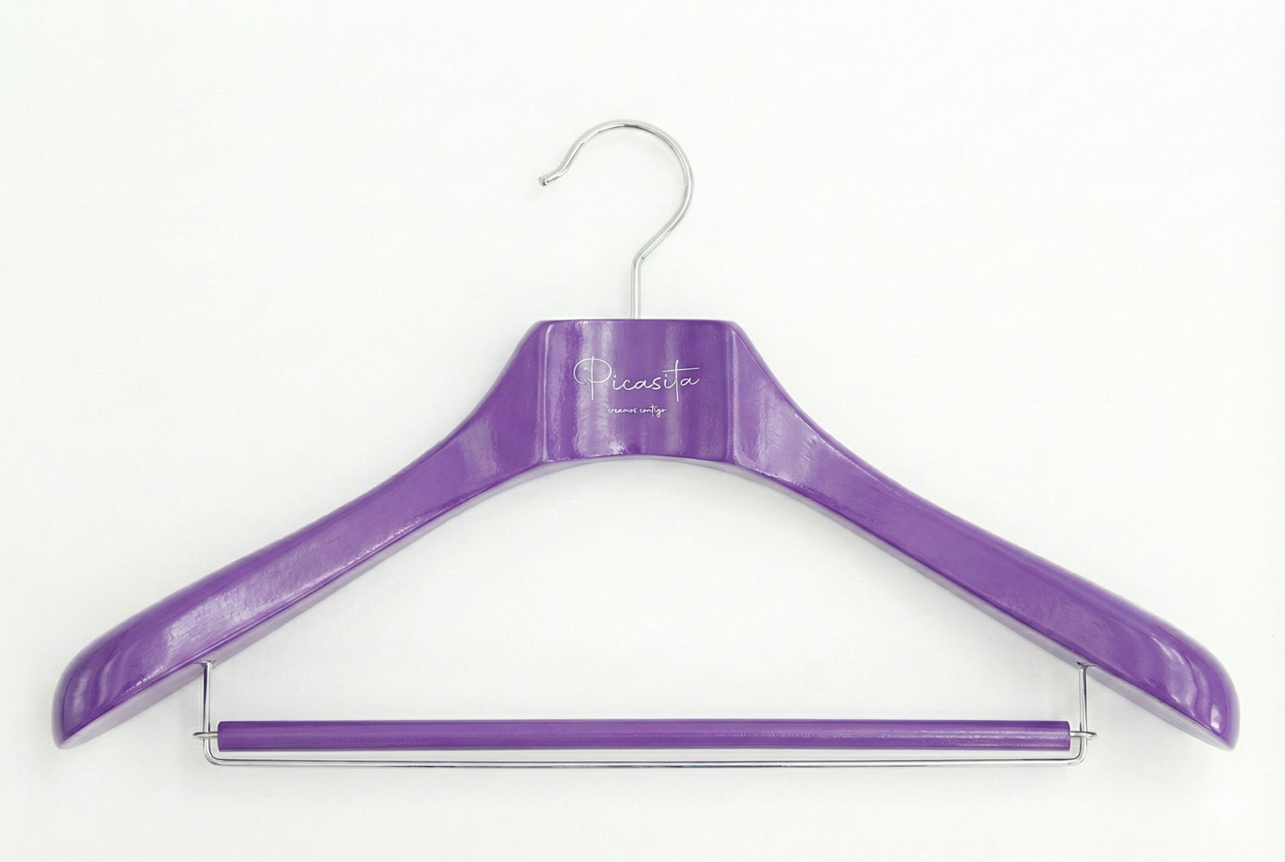 Dieses Produkt wird exklusiv auf Bestellung gefertigt, was eine sorgfältige Verarbeitung in professioneller Qualität garantiert. Aufgrund dieses handwerklichen Prozesses des Schneidens, Lackierens und Personalisierens benötigen wir eine Mindestbestellmenge von 20 Stück und eine Lieferzeit von 35 Tagen. Wenn Sie ein ganzes Geschäft ausstatten oder weitere Optionen benötigen, laden wir Sie ein, unser gesamtes Sortiment an Bügeln für Hotels und Boutiquen zu entdecken.