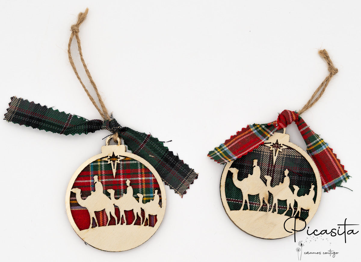 La base de estas singulares piezas es una meticulosa elaboración. Cada bola se recorta con precisión a partir de madera contrachapada, un material que no solo le confiere una robustez excepcional, sino que también aporta una calidez natural y una estética atemporal. Pero lo que realmente las distingue es su diseño multicapa: constan de tres capas, dos de madera finamente trabajada que enmarcan una capa intermedia de tela. Esta estructura tridimensional no solo añade profundidad visual, sino que también permite un juego de texturas que realza la belleza de los motivos navideños. La combinación de la madera natural con la vibrante tela escocesa crea un contraste visual que atrae la mirada y despierta la curiosidad, garantizando que estas bolas sean un punto focal en cualquier decoración.