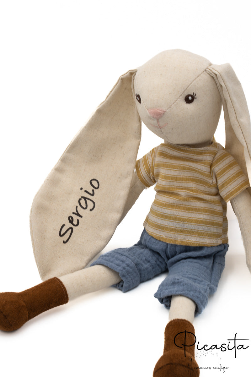What makes this rag doll a truly personal treasure is the possibility of customizing it. We can lovingly embroider the child's name on one of its long ears, transforming an adorable toy into an indelible memory. This personalization makes it a unique object, a gift that speaks directly to the heart of the recipient and their family.