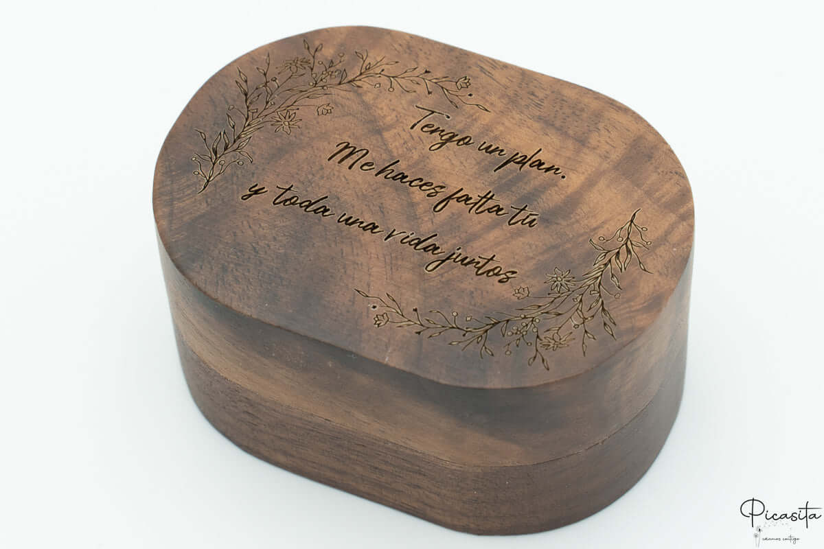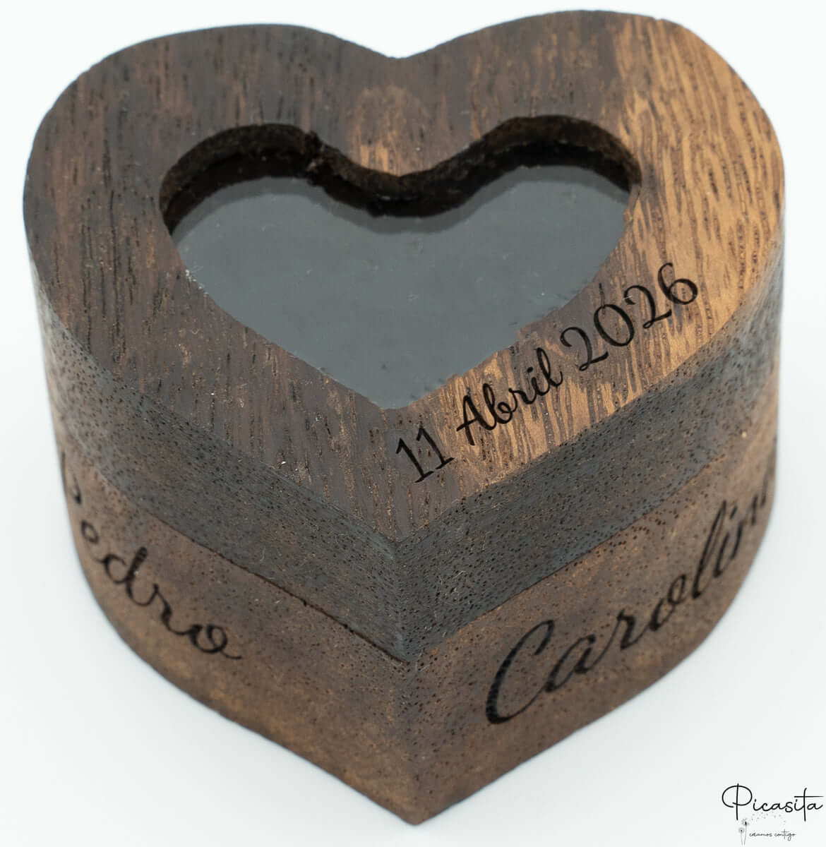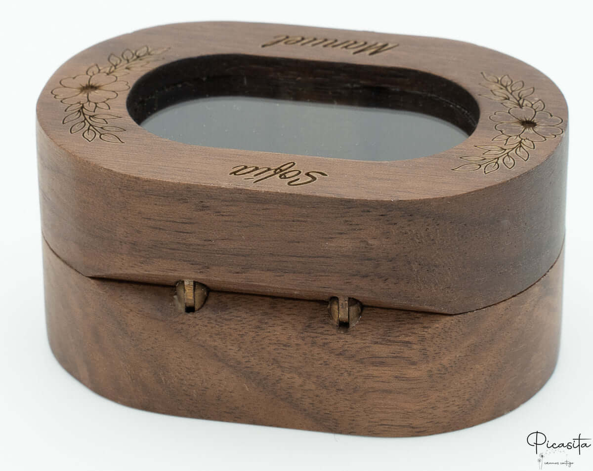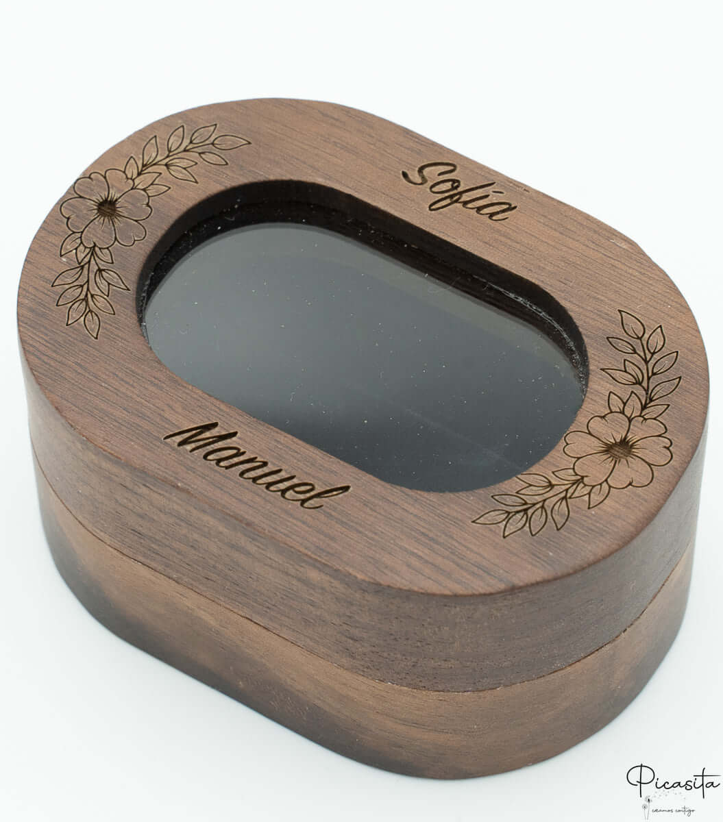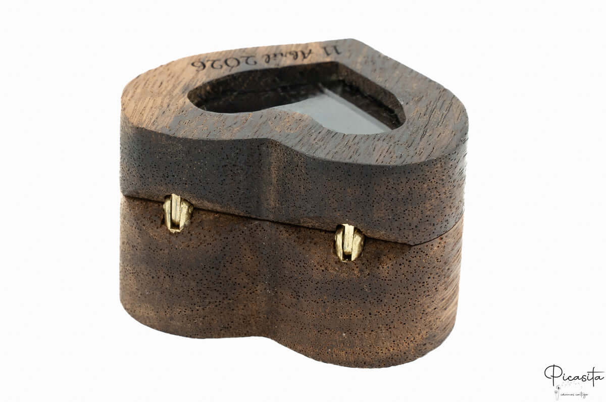 Its solid walnut wood construction ensures exceptional durability. It is not a disposable item, but a piece designed to accompany you for years, aging with you and accumulating sentimental value. When looking for a ring box, it's easy to find impersonal options. However, few combine such noble material, such careful design, and such meaningful personalization. It is an investment in a memory, an object that you can proudly display and that, who knows, might one day pass to the next generation as a small family heirloom.