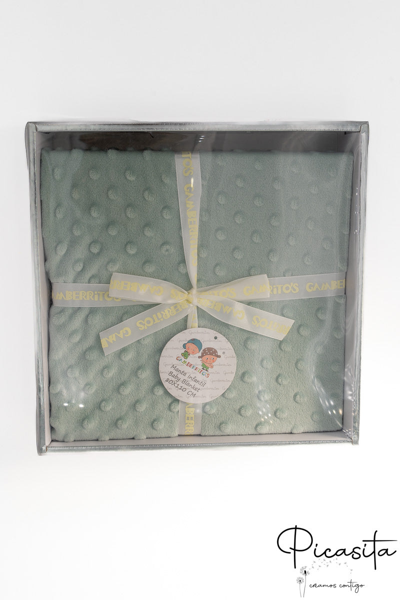 Respuesta: La mantita tiene unas dimensiones de 80x110 cm, un tamaño versátil perfecto para el cochecito, la cuna o para envolver a tu pequeño.