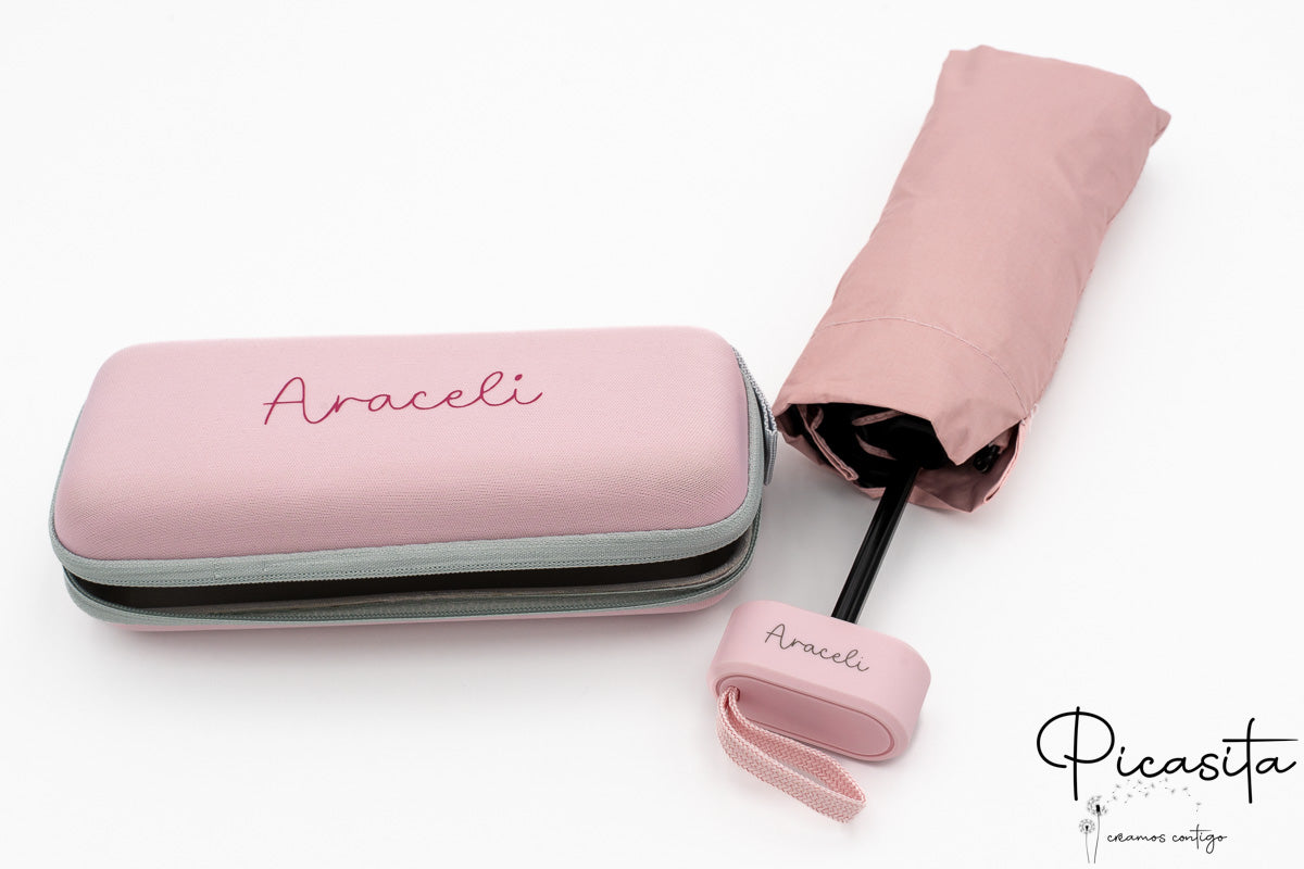 The design of this pocket umbrella is focused on portability. It's lightweight and takes up very little space, perfect for any purse, briefcase, or backpack. A key added value is its semi-rigid, zippered case. Unlike fabric covers, this case protects the structure of the personalized umbrella and, very importantly, contains moisture if you need to store it wet, keeping your belongings dry.