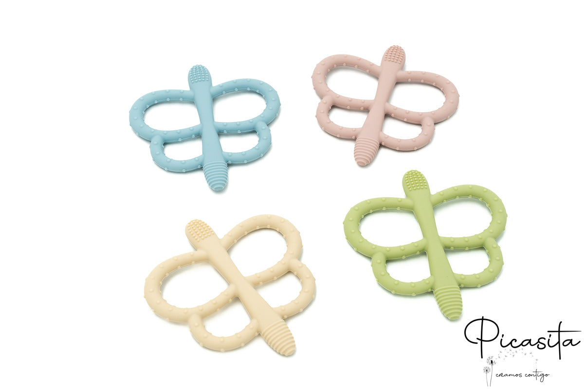 The teething stage is a crucial time in your little one's development. Discomfort, irritability, and the constant need to bite everything are signs we know well. Finding the perfect object that soothes their gums without compromising their safety can be a challenge. That's why we've designed a baby teether that not only fulfills its primary function but also becomes a playmate and exploration tool. With its charming butterfly shape, this teether is designed to capture your baby's attention and offer multiple surfaces to soothe the pain of their first teeth emerging.