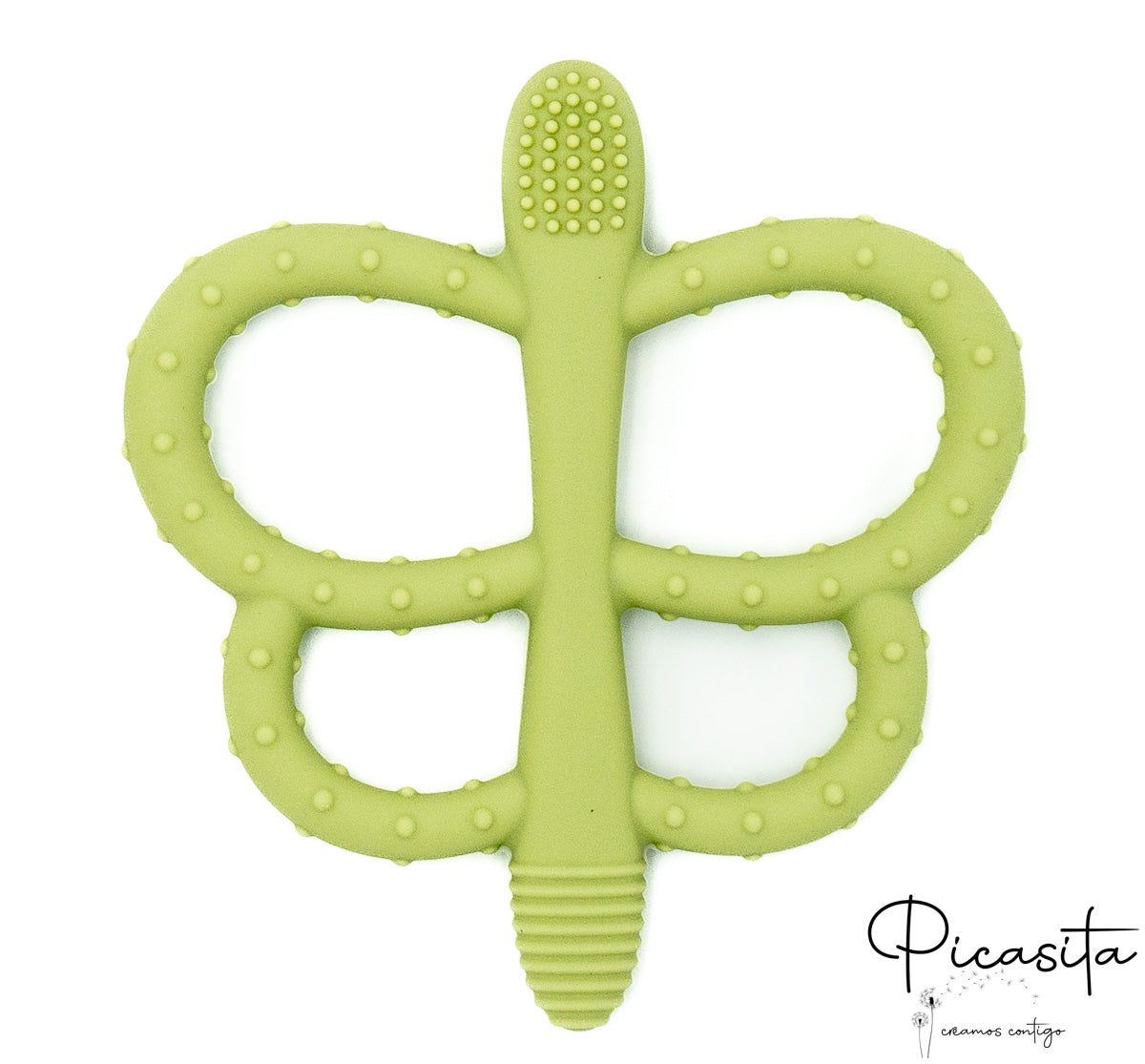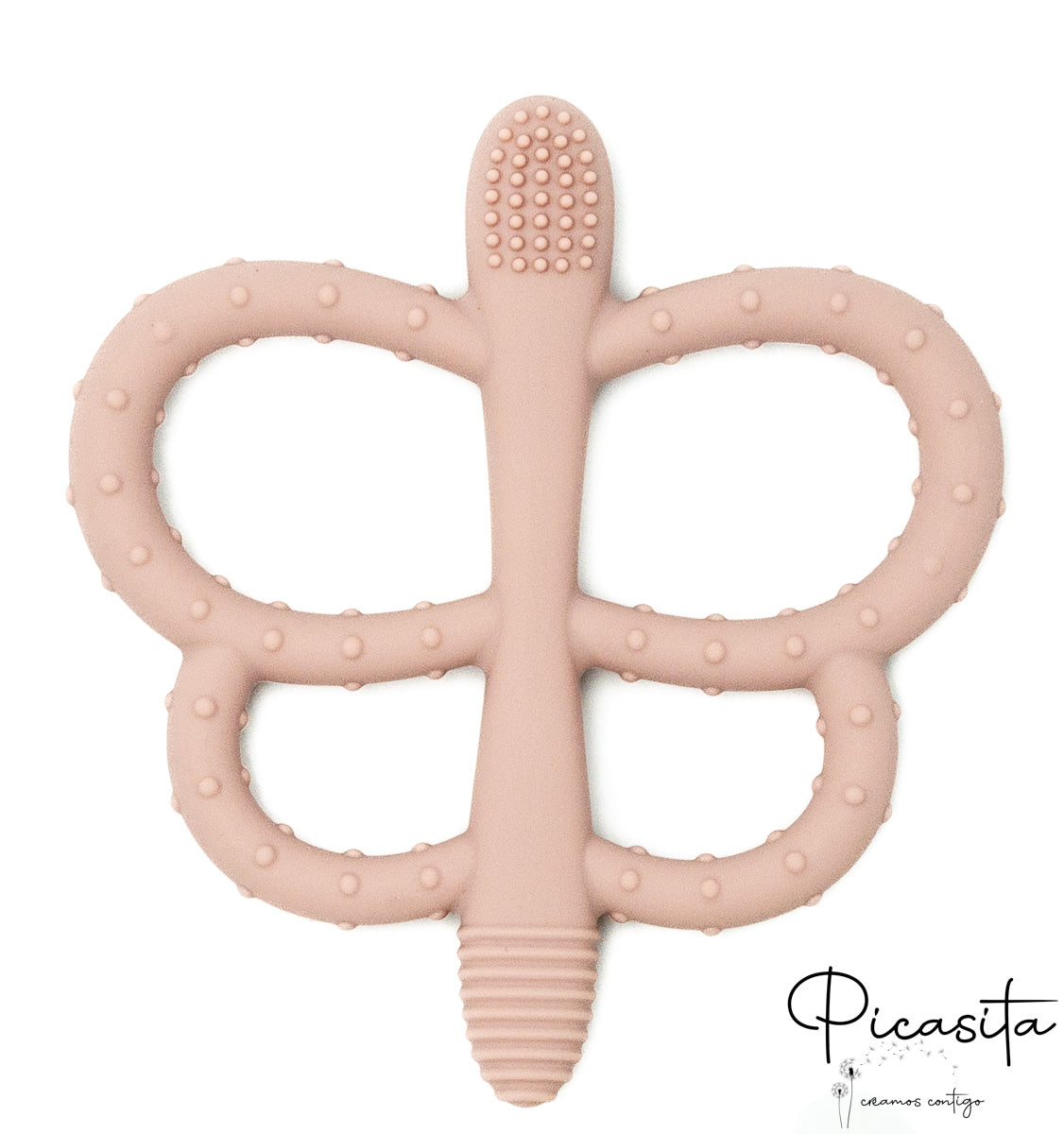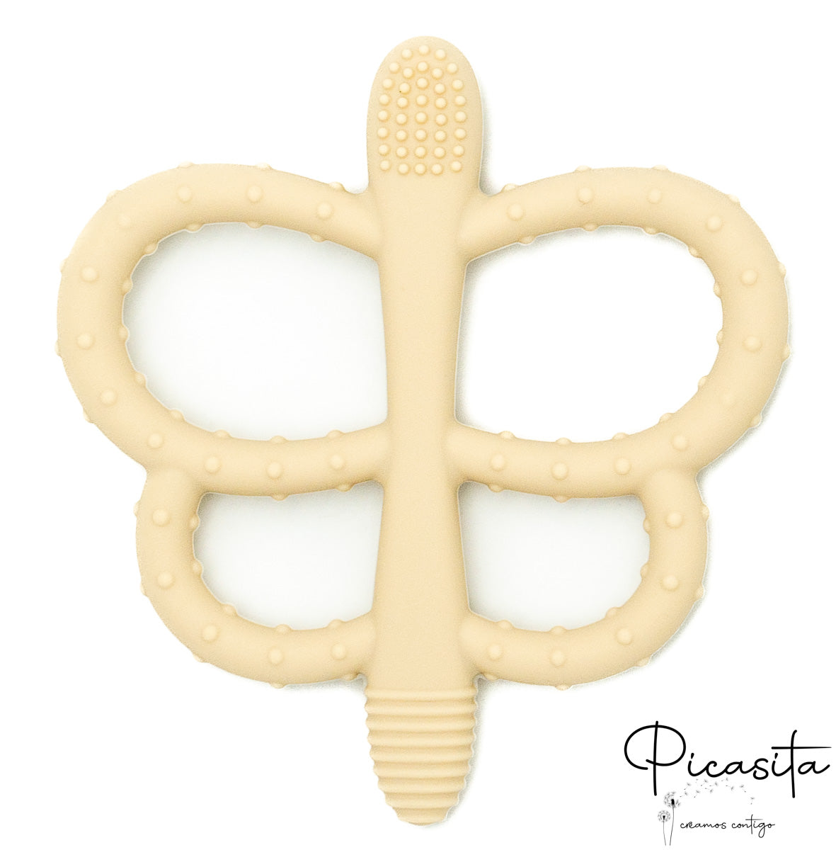 Beyond its primary function, this baby teether is a sensory development tool. The central body and wings of the butterfly feature different reliefs and textures. Antennas with dots, others with ridges, and wings with soft bumps offer a variety of tactile sensations that will fascinate your little one. These stimuli not only relieve itchy gums but also foster the development of fine motor skills by encouraging the baby to grasp, turn, and bring the object to their mouth with precision.
