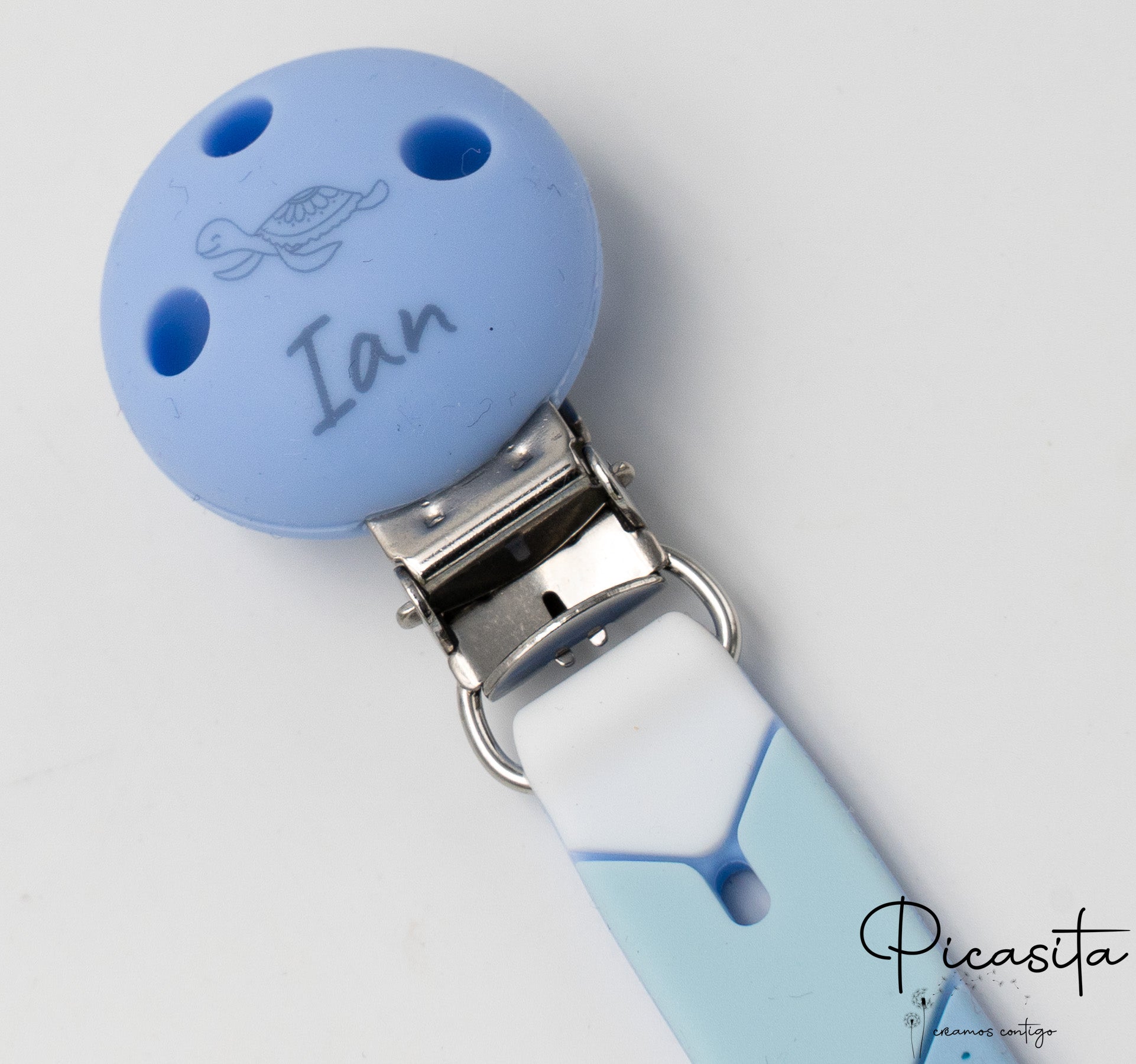 Answer: Yes, you can personalize the silicone clip with the name of your choice. Additionally, you can add an animal icon from our catalog to make it even more special.