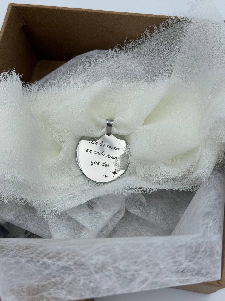 Peut-être l'option la plus émouvante est-elle de transformer votre médaille en un porte-photo sentimental. Une médaille bouquet de mariée avec photo vous permet d'emporter avec vous l'image d'un père, d'une grand-mère ou de tout être cher, ressentant leur présence à chaque pas vers l'autel. Nous gravons la photographie directement sur la surface du métal, obtenant un effet élégant et durable qui transforme la pièce en un puissant talisman. Pour que le résultat soit parfait, il est essentiel que l'image fournie soit de bonne qualité. Souvent, les photos envoyées via des applications de messagerie comme WhatsApp perdent en résolution. C'est pourquoi nous vous recommandons vivement de nous envoyer le fichier original. Si vous avez un doute, notre équipe peut vous conseiller pour garantir que la gravure soit nette et magnifique.