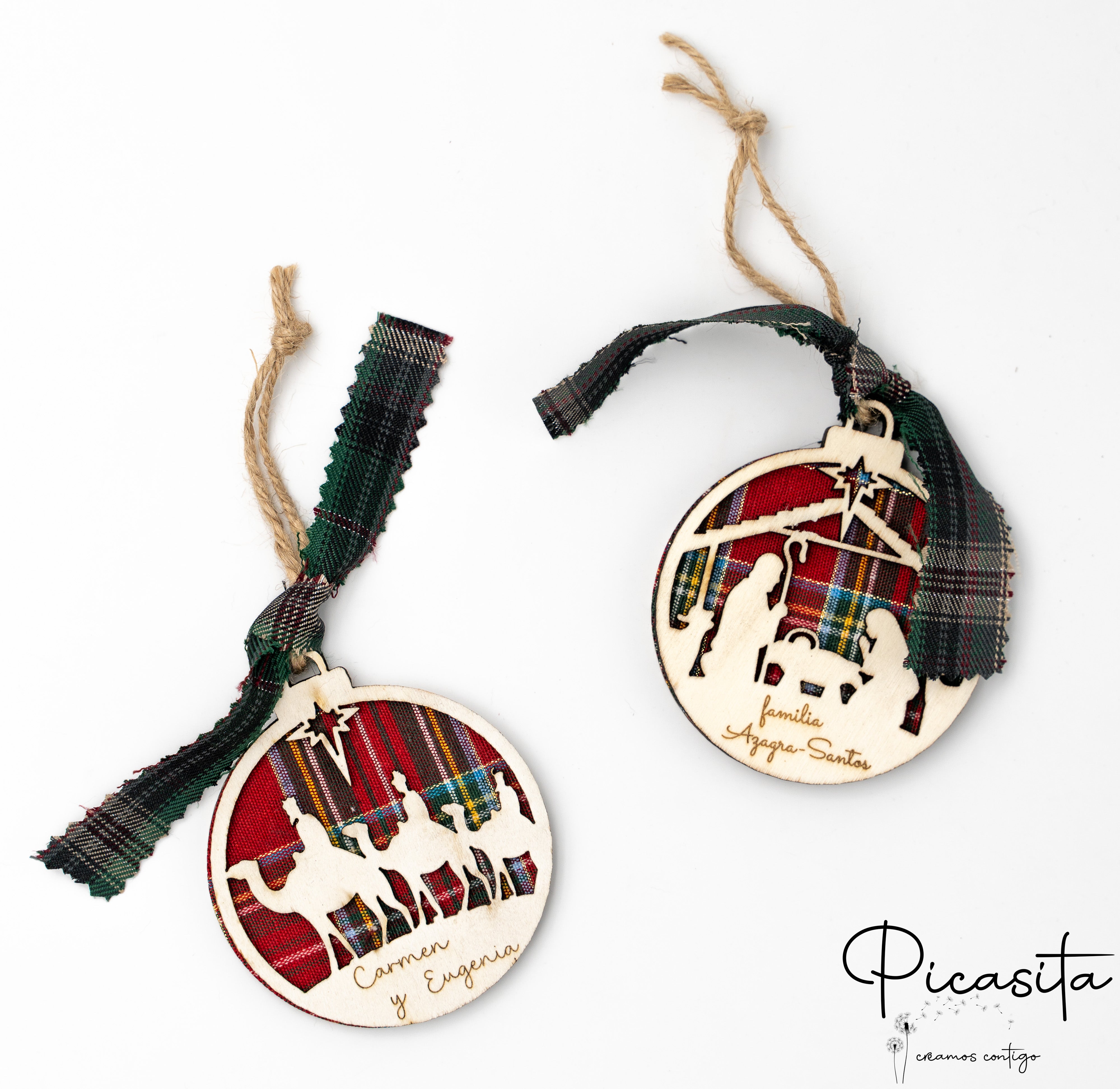 Su Picasita.es, comprendiamo che il Natale è un periodo di tradizioni che meritano di essere ricordate con pezzi speciali. Le nostre palline di Natale personalizzate non sono semplici decorazioni; sono piccole opere d'arte realizzate con una tecnica artigianale di sovrapposizione di tre strati. Due strati di compensato di alta qualità abbracciano un cuore di tessuto a quadri scozzesi (plaid), creando un rilievo tridimensionale che dona calore, texture e profondità a qualsiasi albero di Natale.