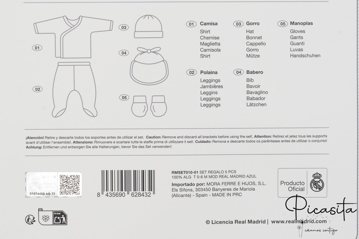 Questo prodotto è un articolo ufficiale e autentico del Real Madrid, come dimostra l’ologramma di autenticità sulla confezione. Da Picasita, ci impegniamo a offrire solo prodotti genuini. Per sua natura e per garantire la massima sicurezza e igiene per il tuo bambino, questo set è considerato biancheria intima. Per questo motivo viene spedito completamente sigillato in fabbrica. È fondamentale tenere presente che, una volta rimosso il sigillo, il prodotto non potrà essere cambiato né restituito. Questa misura protegge la salute dei più piccoli, assicurando che ogni cliente riceva un prodotto intatto e sicuro.