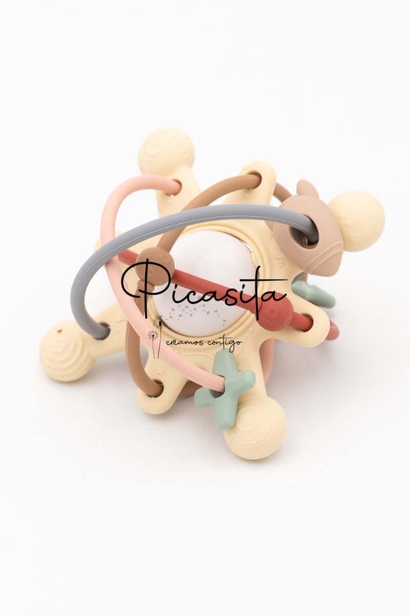 Comprendiamo che la vita con un bambino richiede soluzioni pratiche che semplifichino le routine. Questo sonaglio in silicone è stato concepito per essere incredibilmente funzionale. La sua struttura aperta e la sua dimensione sono perfette non solo per le mani del bambino, ma anche per poterlo fissare facilmente alla barra del passeggino, al seggiolino dell'auto o all'altalena. In questo modo, il giocattolo preferito del tuo bambino rimane sempre a portata di mano, pulito e sicuro, evitando cadute continue a terra e ricerche disperate nella borsa.