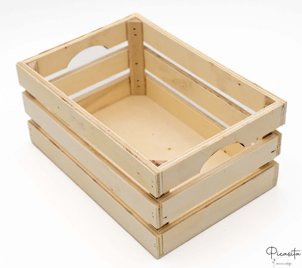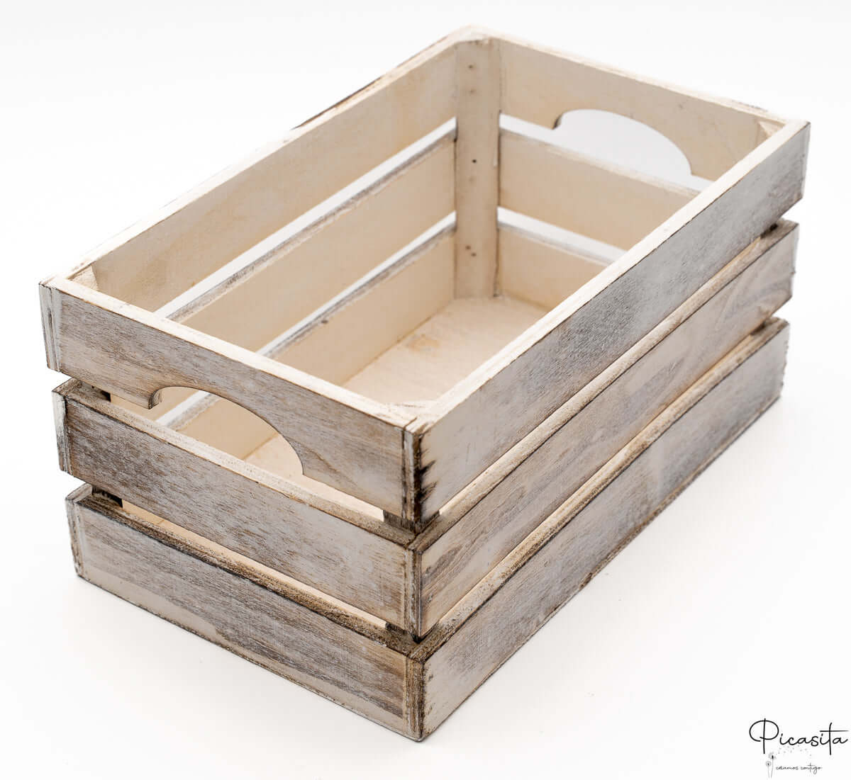 Fabricada con esmero, esta pieza destaca por su solidez y su acabado cuidado. Tienes la libertad de elegir entre dos acabados que se adaptan a diferentes estilos. Por un lado, la versión Grande Blanca, con unas dimensiones de 26 cm de largo, 16 cm de ancho y 13 cm de alto, presenta un acabado decapado en blanco que le confiere un aire vintage y luminoso. Por otro, la versión Pequeña Pino, de 22x15x10 cm, muestra la belleza de la madera de pino en su estado natural, ideal para ambientes que buscan un toque más nórdico o campestre. Ambas cuentan con prácticas asas laterales para facilitar su manejo y transporte.