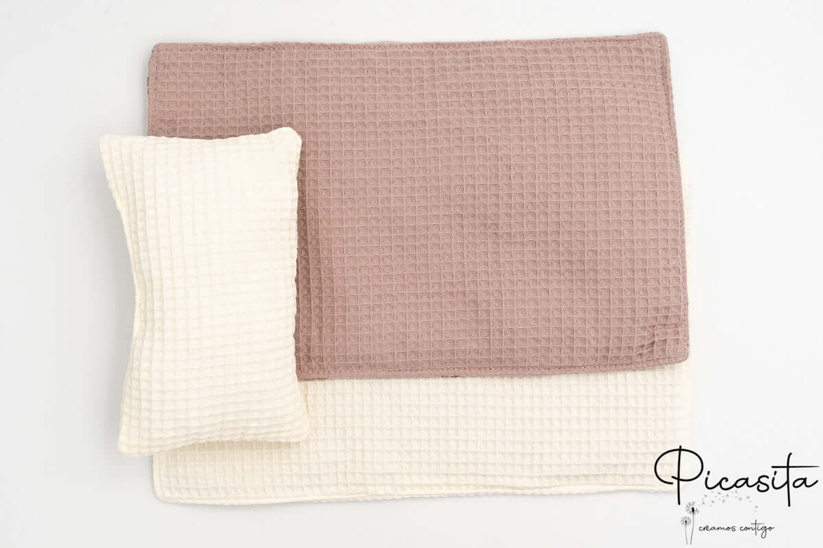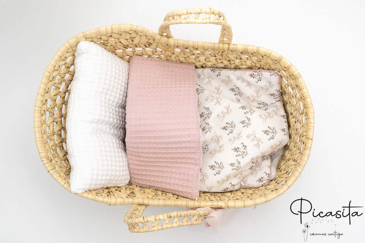 Lo que realmente hace brillar a nuestro moises artesanal es su ropa de cama. Confeccionamos cada set de forma totalmente artesanal en nuestro taller. El conjunto incluye una almohada mullida en suave tela de gofre blanca y un saquito con un delicado estampado floral en tonos malva. Al elegir este capazo para muñeca, estás apostando por un producto de larga duración que respeta los ritmos de la infancia y fomenta un juego creativo lleno de mimos y recuerdos inolvidables.