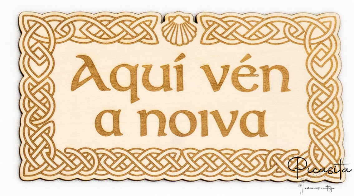 Cartel de madera: Aqui viene la novia y Aqui llega la novia