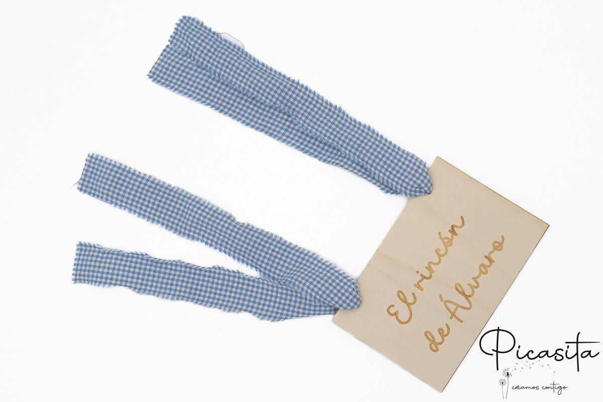 Este cartel está especialmente pensado para ser colgado en la silla favorita del niño en su rincón de juegos, o directamente en la pared. Incluye una tela cortada, a modo de cinta, con estampados alegres que complementan la estética del cartel y facilitan su colocación. El mensaje "El Rincón de