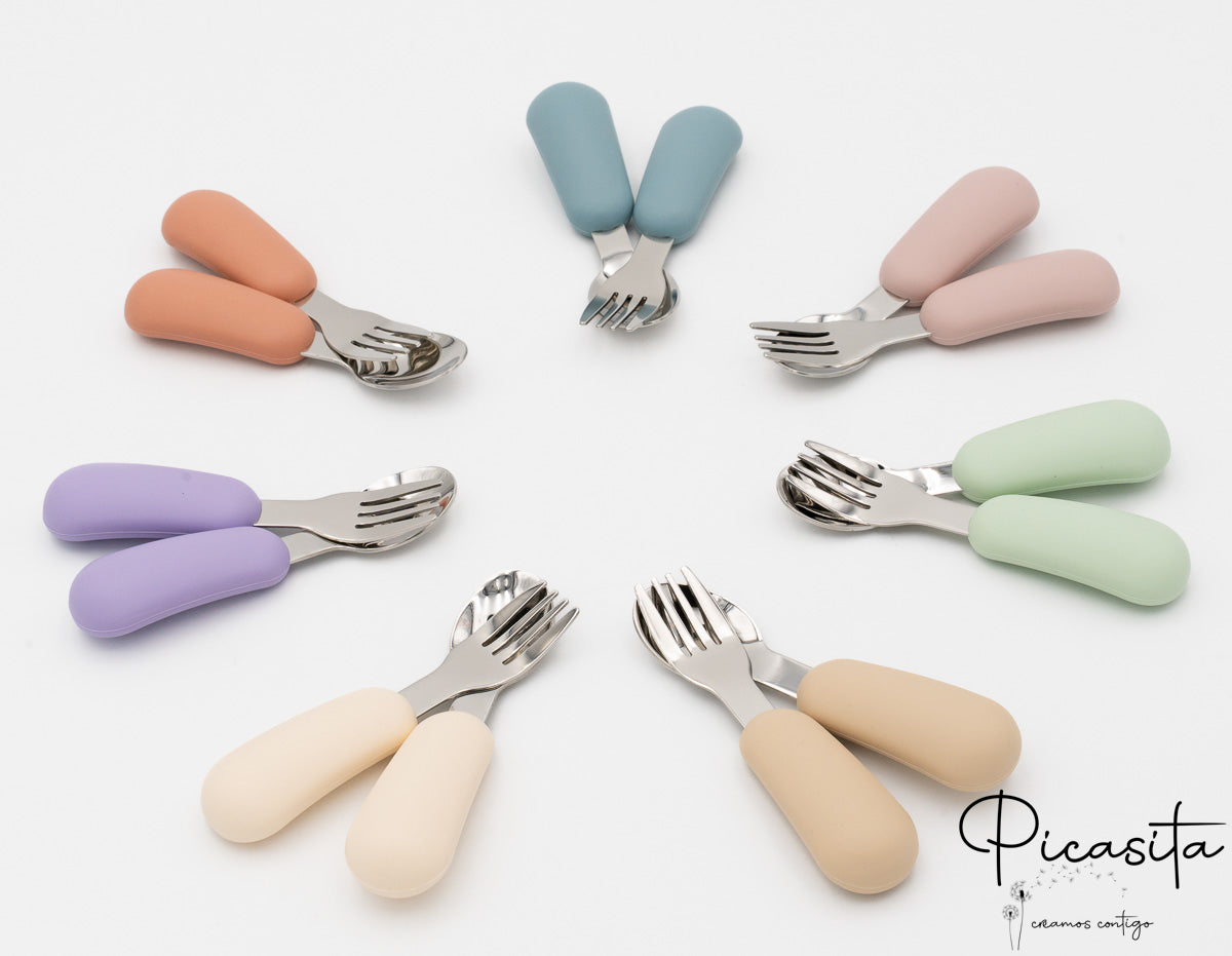 Ver a tu pequeño dar sus primeros pasos hacia la independencia en la mesa es un hito emocionante. Para acompañar este proceso fundamental, en Picasita hemos diseñado los cubiertos de aprendizaje definitivos. Olvídate de la frustración; estos utensilios están pensados para que cada bocado refuerce la autoconfianza de tu hijo mientras aprende a coordinar sus movimientos de forma natural y segura.