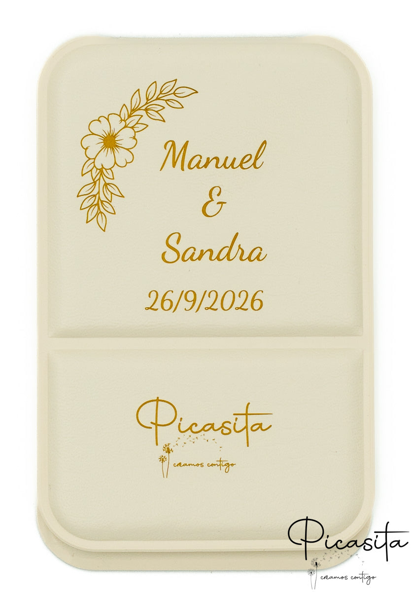 La calidad de los materiales asegura que este regalo de bodas perdure en el tiempo. El cuero sintético PU es resistente y fácil de limpiar, mientras que el espejo de cristal está protegido por la propia funda, evitando arañazos y roturas. Es un detalle sofisticado que habla del buen gusto de los anfitriones y del aprecio que sienten por las personas que los acompañan en su gran día.