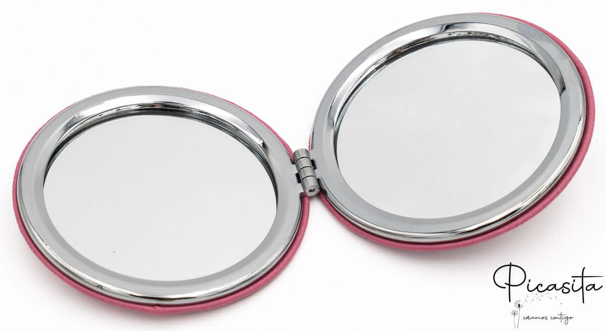 La estructura de este espejo de acero inoxidable garantiza una resistencia excepcional, mientras que su acabado exterior en espejo de cuero sintetico (PU) ofrece un tacto suave y premium. En su interior, dispone de un sistema de espejo doble de cristal de alta calidad, con un diámetro de 70mm, ideal para llevar en cualquier bolso o neceser.