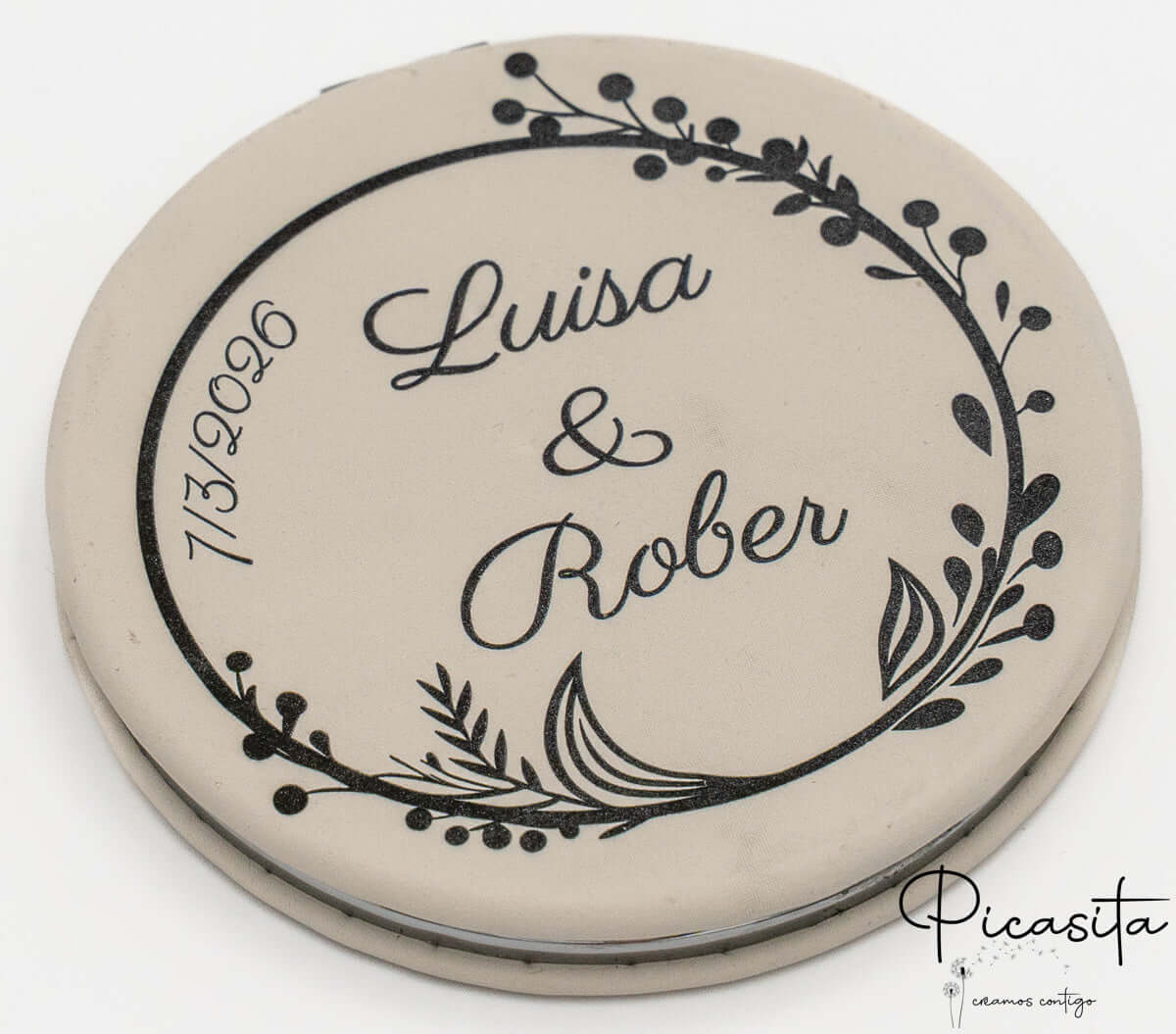 Si buscas un regalo que combine utilidad y sofisticación, nuestros espejos para boda son la opción definitiva. Este espejo de bolsillo no es solo un accesorio de belleza, sino un recuerdo duradero diseñado para resistir el día a día con estilo.