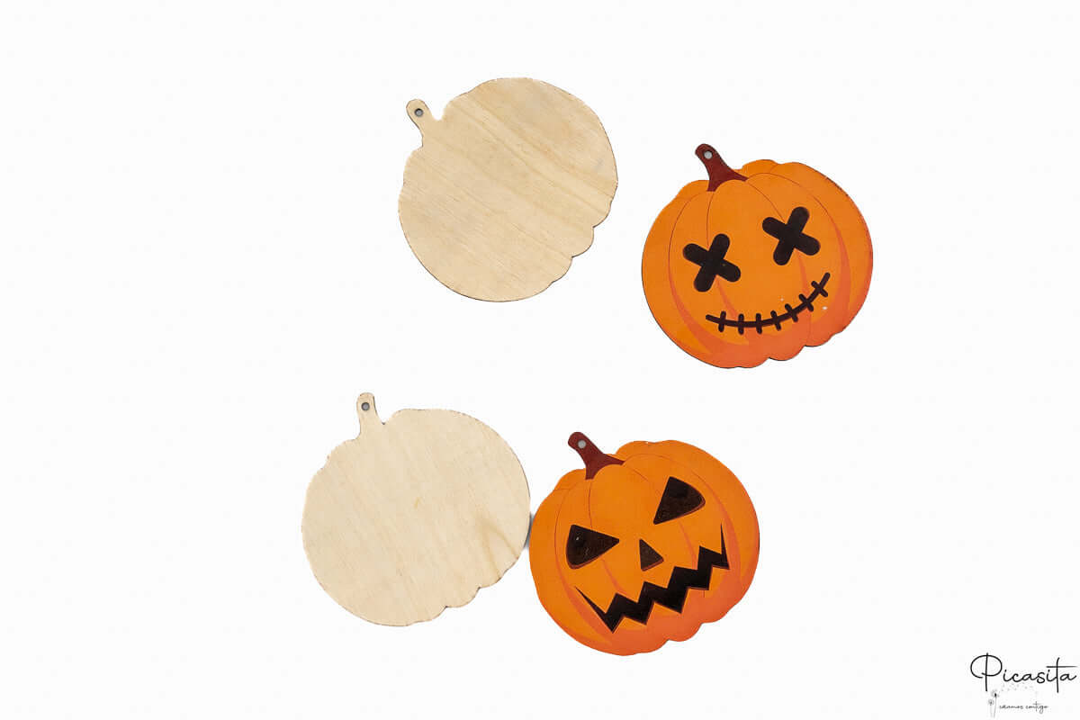 Respuesta: El reverso de cada calabaza es de madera natural sin pintar, ideal para que puedas escribir sobre él con un rotulador permanente, bolígrafo o rotulador de pintura.