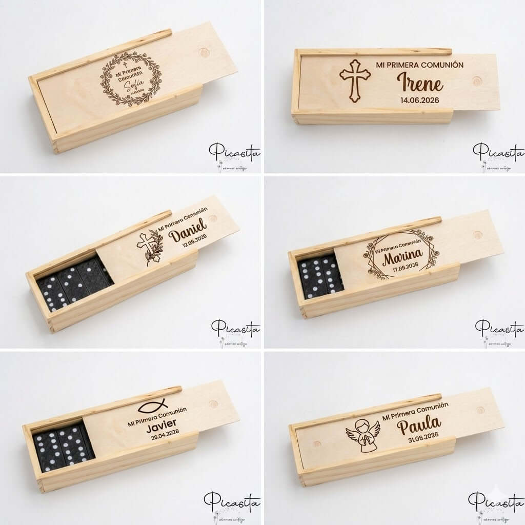 Una comunión es un hito importante, y los invitados más jóvenes merecen un recuerdo a la altura. Nuestra selección de regalos para niños de primera comunion incluye opciones atemporales como el dominó en caja de madera, el yoyó clásico, el tres en raya y encantadoras libretas de animales acompañadas de lápices de colores. Fabricados en materiales cálidos y sostenibles como la madera natural, el papel kraft y el cartón reciclado, estos detalles transmiten una sensación ecológica, nostálgica y de alta calidad. Explora todo nuestro catálogo en Nuestra Tienda para descubrir más ideas maravillosas.