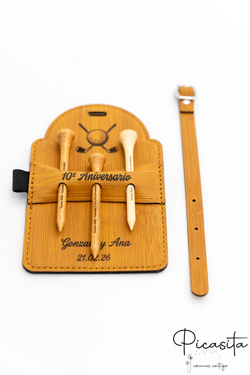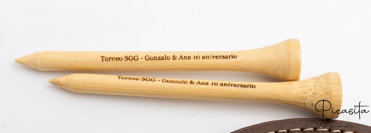 ¡Sí! De forma opcional, puedes complementar tu portatees incluyendo tees de madera grabados a láser con el nombre del evento, la fecha o tu marca, creando un regalo corporativo o de aniversario 100% exclusivo.