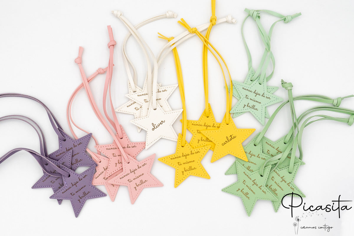 Respuesta: Sí, cada estrella incluye su propio cordón a juego para poder colgarla fácilmente en una mochila, un llavero o donde prefieran. Vienen listas para entregar a los invitados.
