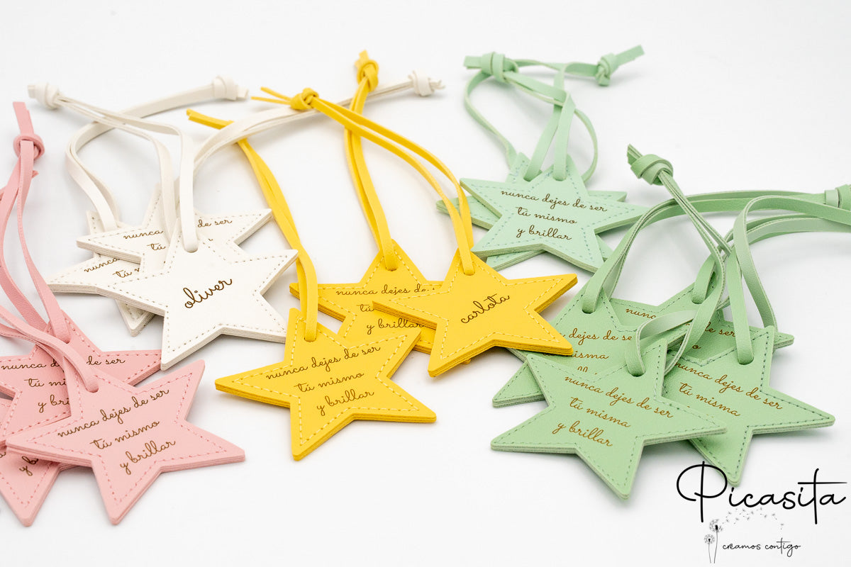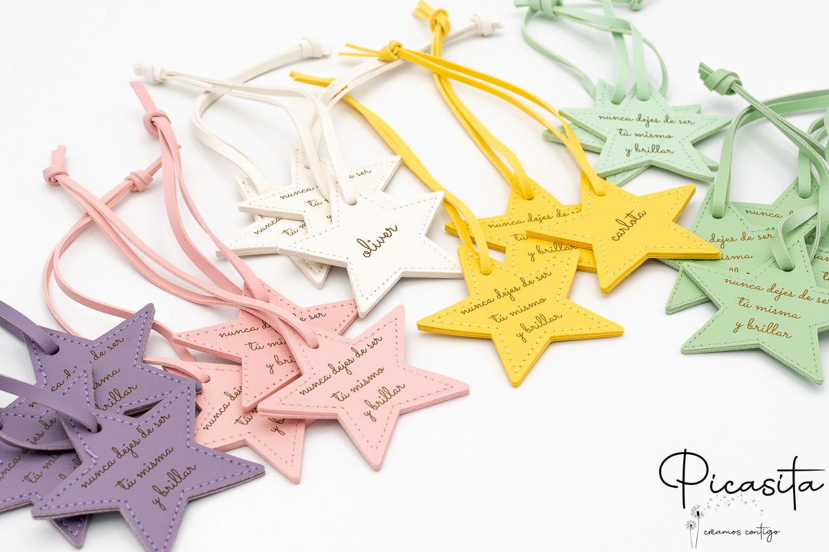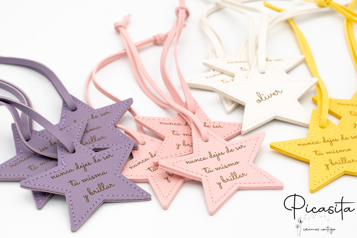 Imagina la cara de los amigos de tu hijo al recibir una estrella con su propio nombre grabado, o con una frase especial que les recuerde lo bien que lo pasaron. No es solo un objeto, es un mensaje de afecto, un agradecimiento tangible que va más allá de lo efímero. Cada estrella está confeccionada con esmero en cuero sintético PU, un material que no solo es agradable al tacto, sino también resistente y duradero. Su acabado, con un pespunte perimetral, le confiere un aspecto artesanal y cuidado que se nota al instante.
