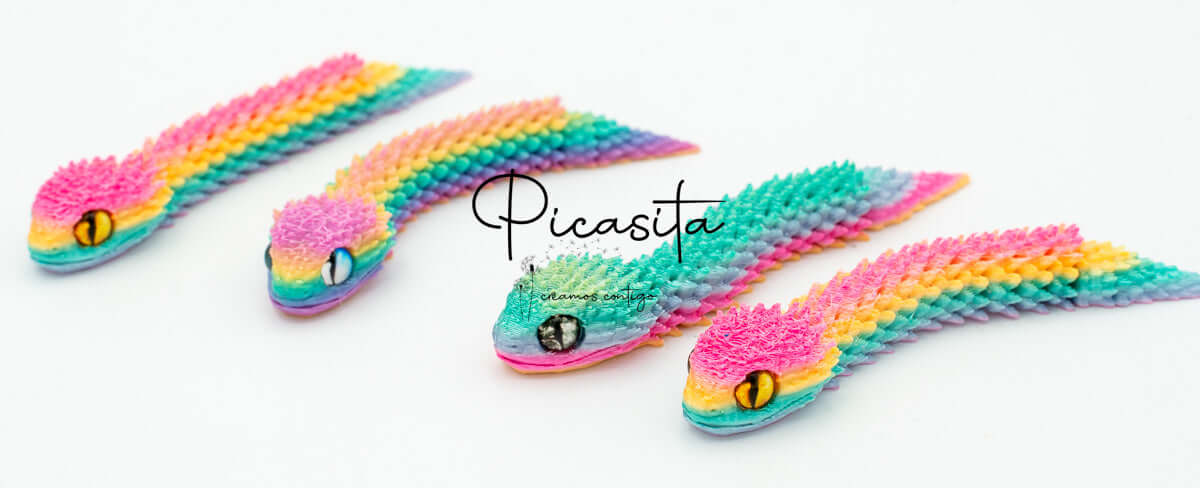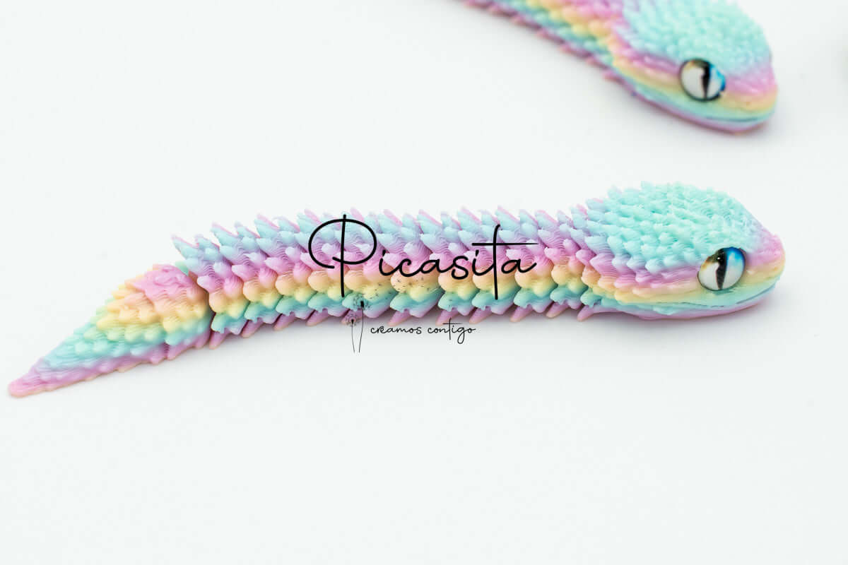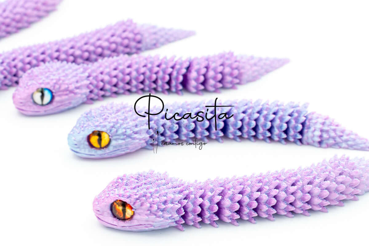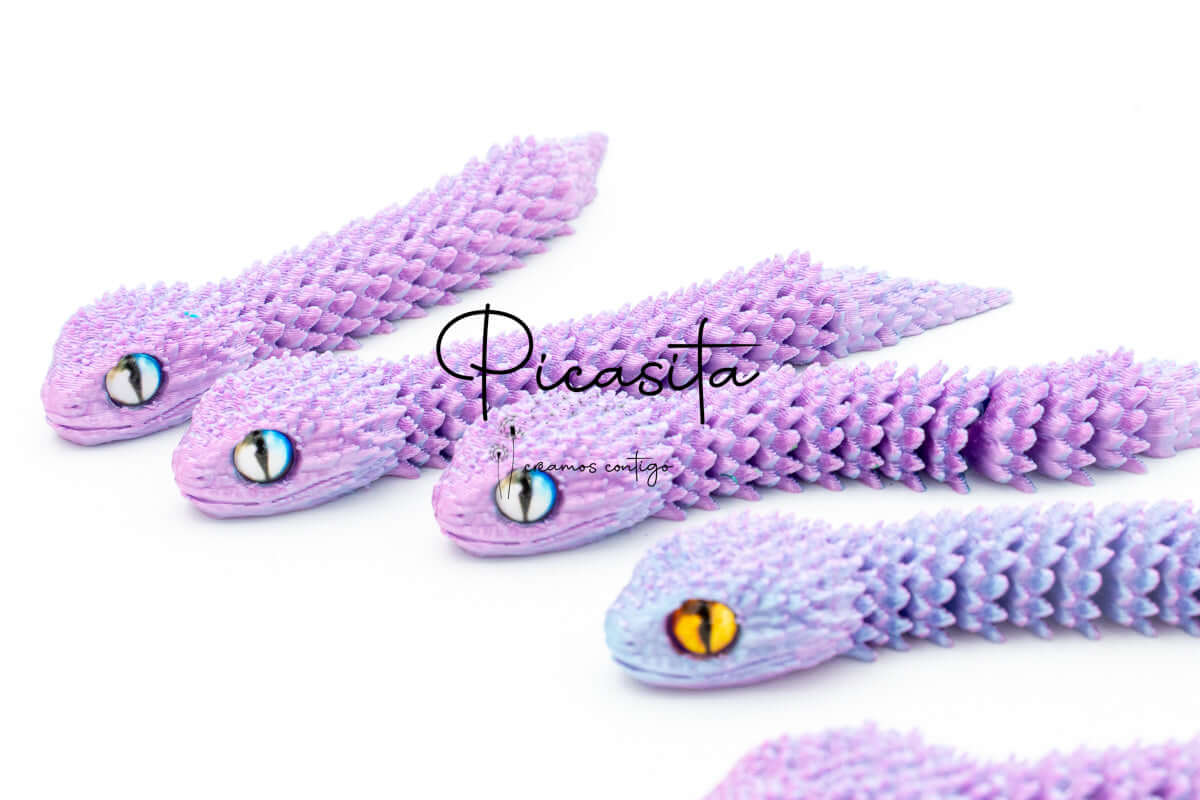 Para los amantes de la naturaleza y la aventura, los tonos Verde o Verde y Amarillo evocan paisajes selváticos y exóticos. Y si lo tuyo es un toque de misterio y sofisticación, las combinaciones Azul y Morado o Rosa y Morado son la elección ideal. Estos no son simples juguetes impresos 3d; son pequeñas obras de arte portátiles, joyas de color que capturan la luz y la atención. Colecciónalas, combínalas y muestra tu estilo con una vibora 3d que habla de ti.