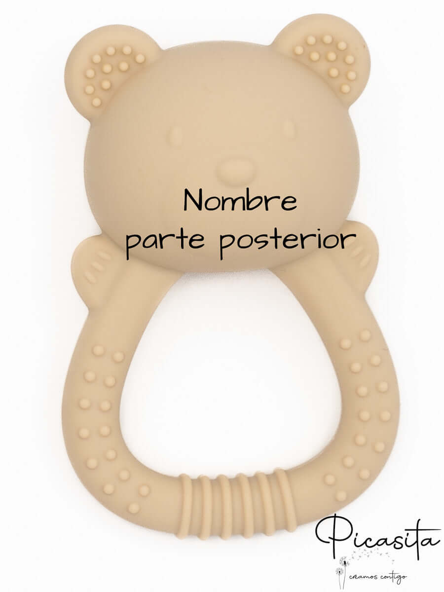 Respuesta: La personalización se realiza mediante un grabado láser de alta precisión en la parte posterior del sonajero. Este método es seguro, permanente y no afecta a la calidad ni a la textura del material.