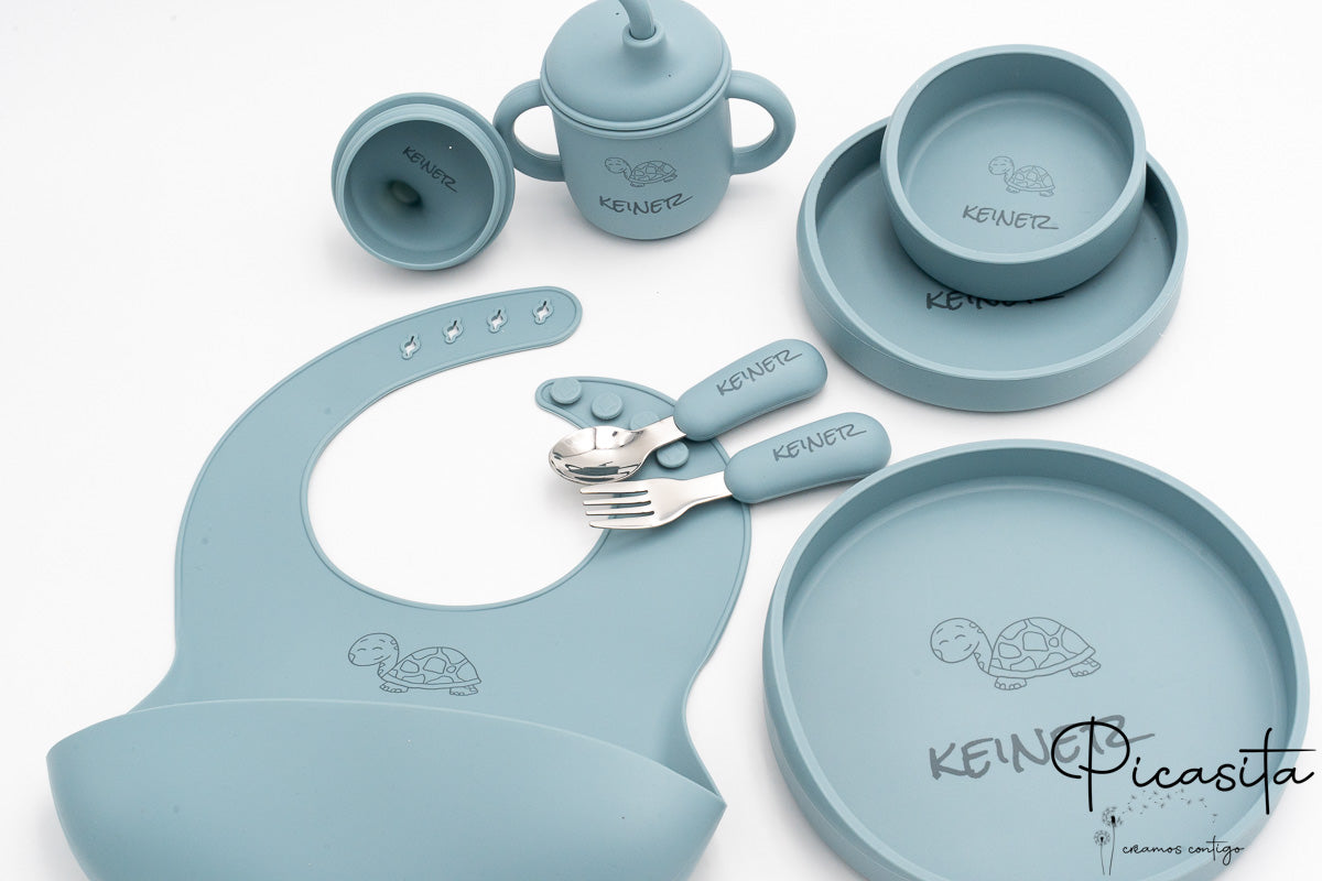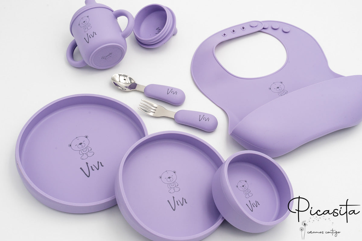 El momento de la comida es fundamental para el desarrollo y el aprendizaje de tu pequeño. Por eso, elegir una vajilla de bebe personalizada que combine seguridad, diseño ergonómico y practicidad es vital para su crecimiento. En Picasita, hemos diseñado un set exclusivo de 7 piezas pensado para fomentar la autonomía mediante el método Baby Led Weaning (BLW). Si estás buscando el detalle perfecto, regalar vajilla para bebe de nuestra colección asegura un acierto inolvidable, combinando la emoción de ver el nombre del niño grabado con la tranquilidad absoluta de usar materiales de la más alta calidad.