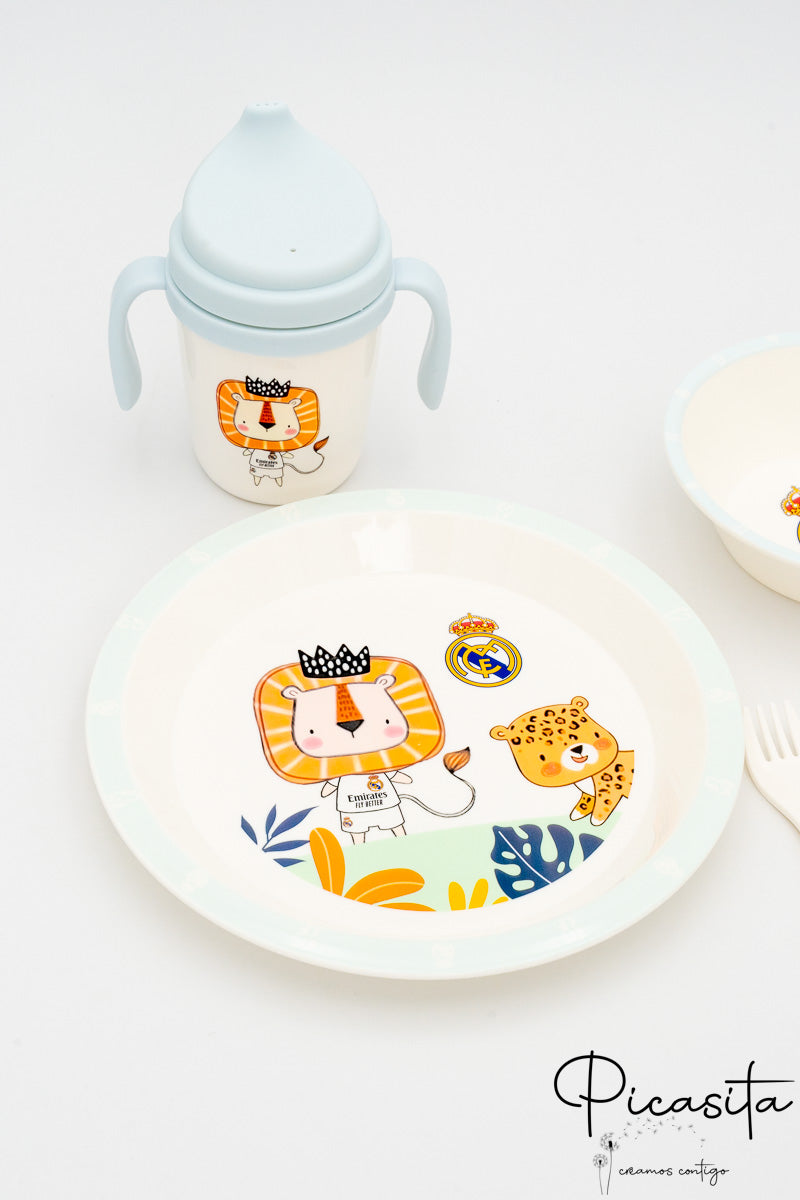 Imagine o sorriso do seu filho ou filha ao ver a sua equipa favorita, o Real Madrid, acompanhando-os em cada pequeno-almoço, almoço ou jantar. A nossa exclusiva loiça infantil do Real Madrid não é apenas um conjunto de pratos e talheres; é um convite à diversão e à paixão pelo futebol desde tenra idade. Com um design vibrante que incorpora o emblema do clube e adoráveis personagens como um leão e um leopardo, esta loiça foi pensada para tornar os momentos à mesa inesquecíveis.
