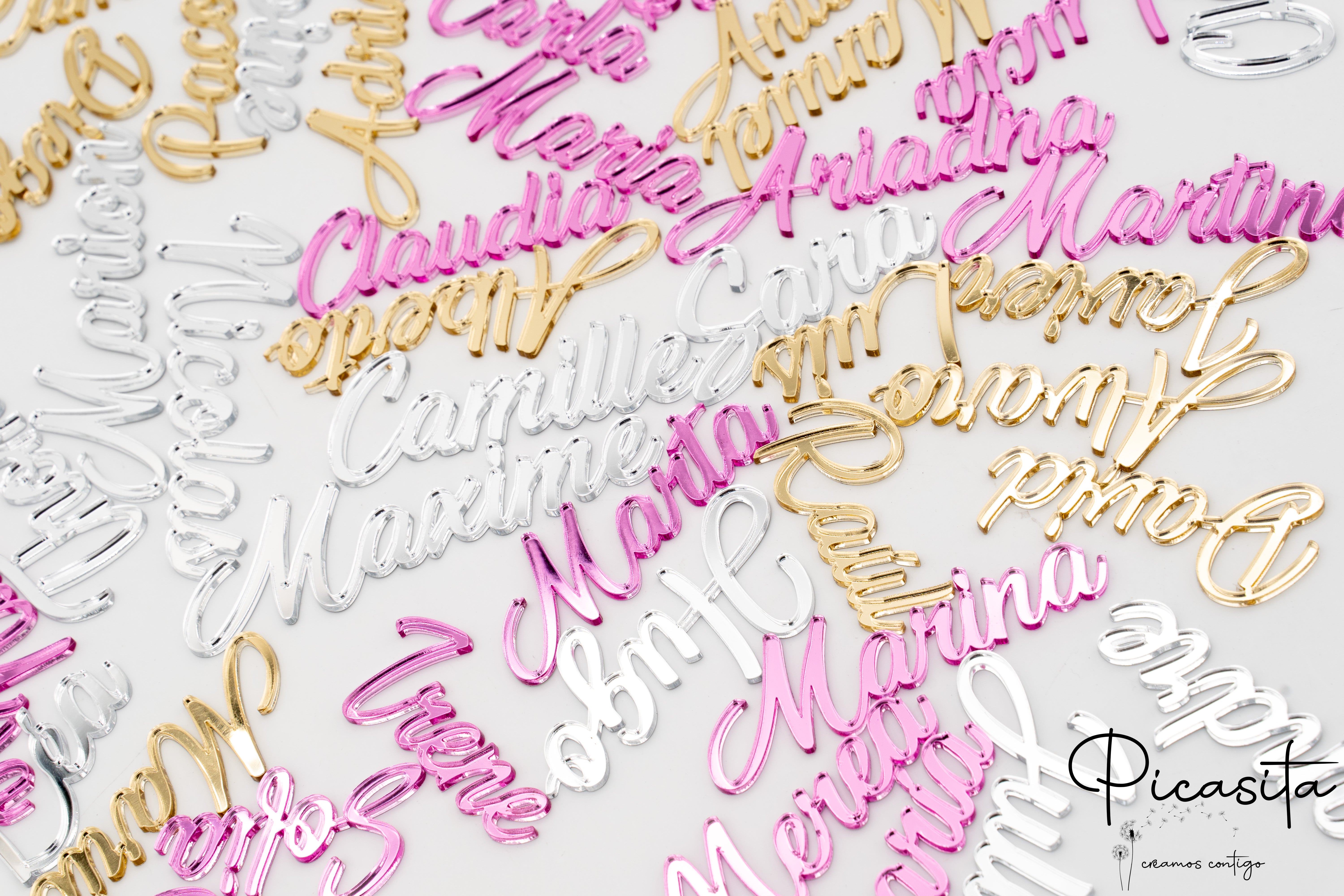 Cada nome é tratado como uma peça única, assegurando que a qualidade seja consistente do primeiro ao último. A combinação de um material premium como o metacrilato e uma técnica de produção avançada permite-nos oferecer-te um produto final impecável. Este cuidado pelo detalhe é o que faz com que um marcasitios acrílico da Picasita seja a escolha perfeita para quem não se conforma com o convencional e procura a excelência em cada aspeto da sua celebração. Confia em nós para materializar essa pequena grande ideia que fará com que o teu evento seja, simplesmente, inesquecível.